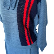 鮮やかなブルーカラーに、ストライプ柄が印象的なトップスの紹介です。