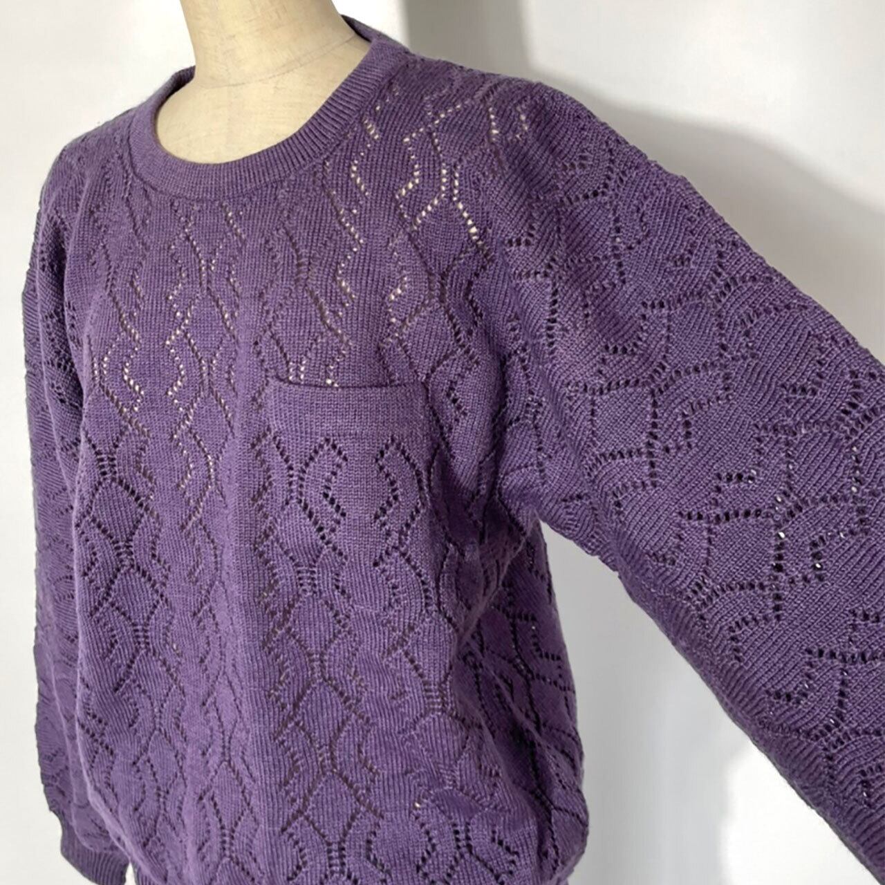 204 UNISEX PURPLE LACE TOPS ユニセックス ユニセックスアイテム オーバーサイズニット オーバーサイズ シンプルニット ハンドメイドニット 一点物ニット
