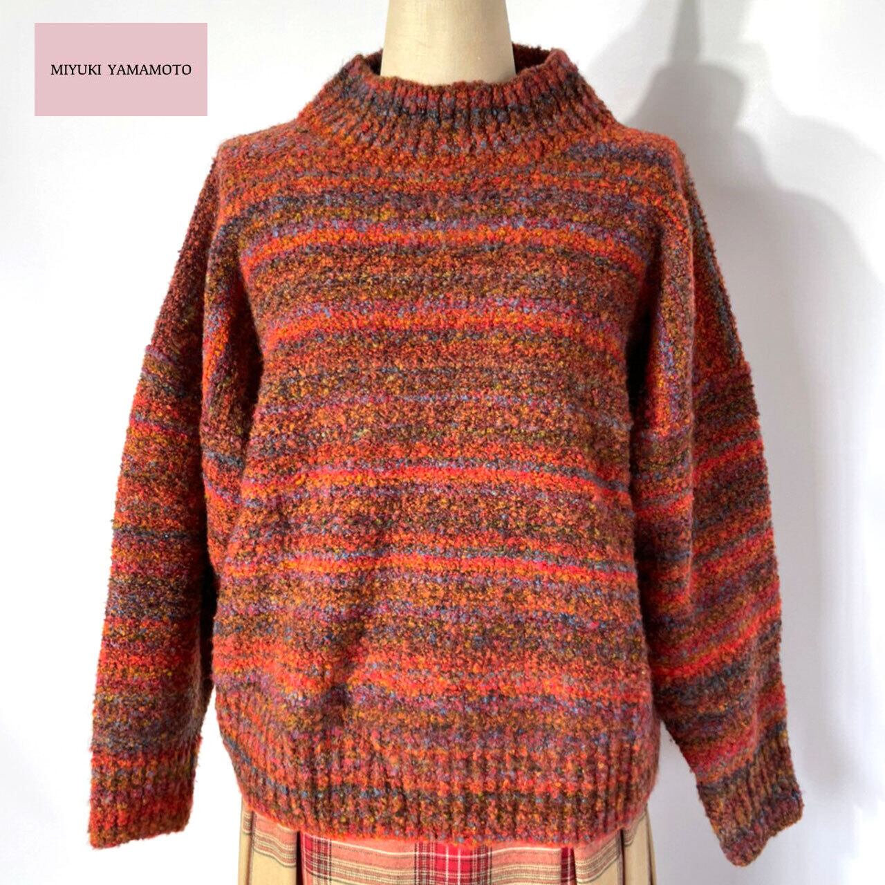 冬にぴったりなオレンジベースのマルチカラーが可愛いブークレトップスです。