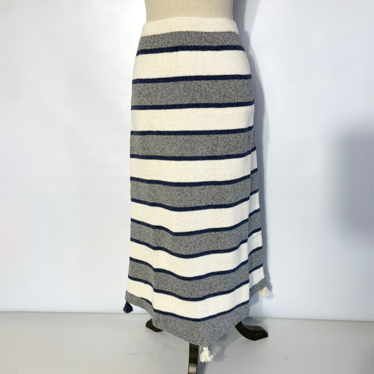 揺れるフリンジが可愛らしいシルクデニムロングスカート☆