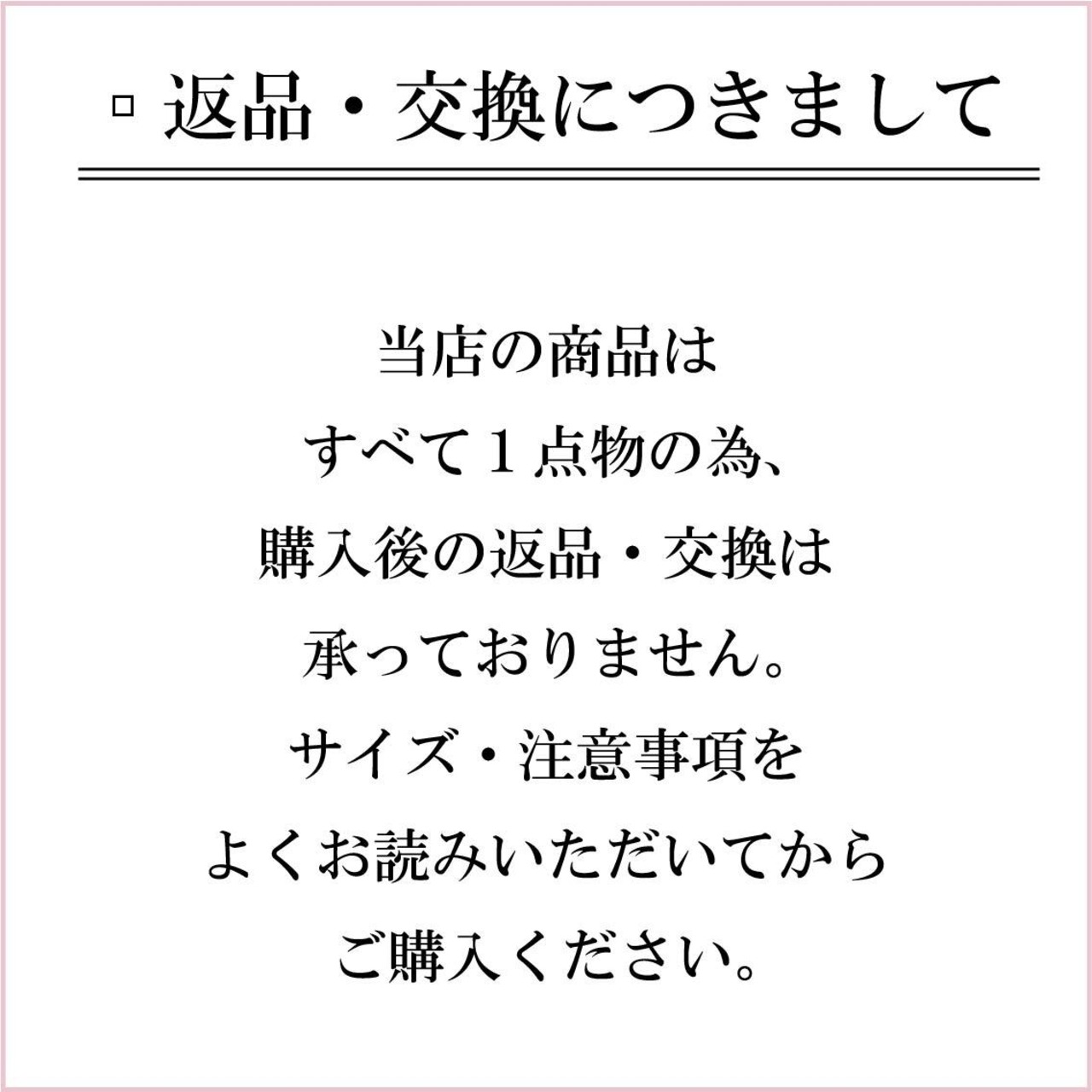 当店の商品はすべて1点物となっており、返品交換は不可とさせていただいております。