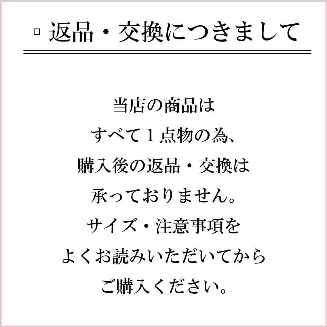 当店の商品はすべて1点物となっており、返品交換は不可とさせていただいております。