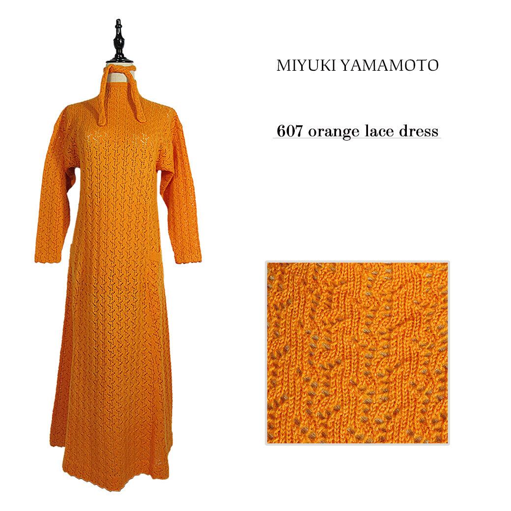 607 orange lace dress / オレンジ レース ドレス / レース編み / ニット ワンピース / ニットウェア / 1点物